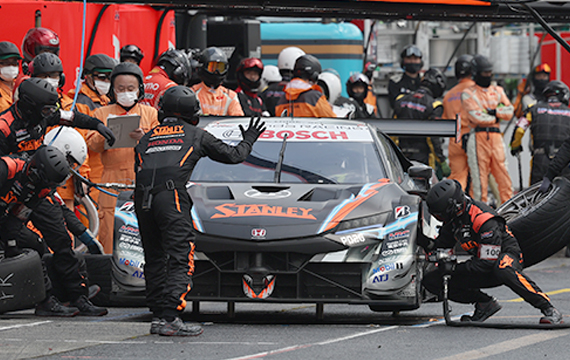 SUPER GTには、自動車メーカーが高性能GTカーとして販売する車両をベースとした40数台のレーシングカーが参戦しています。 GT500クラスにはトヨタ、ホンダ、ニッサンのGTマシンが、GT300クラスには国内外の有力メーカーのGTカーが参戦しています。 その魅力的なGTカーを操るのはF1やWEC(世界耐久選手権)といった世界選手権で実績を残したドライバーや国内トップカテゴリーで活躍する人気と実力を兼ね備えたトップドライバーたち。 また、彼らと共に戦うチームも日本のトップレベルが揃っています。